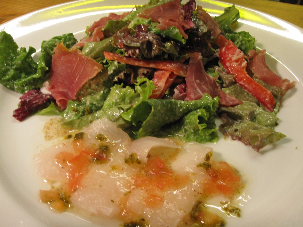 人気のサラダ☆パルマ産生ハムのサラダとマナガツオのカルパッチョ