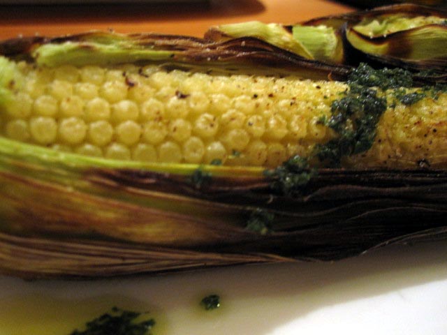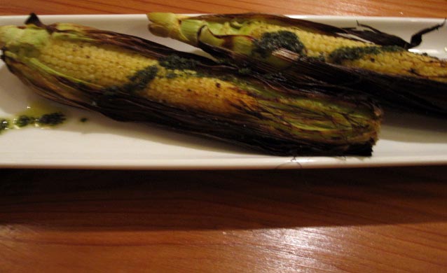 とうもろこしの窯焼きバジルソース 小2本で¥480-