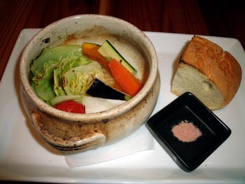 ご存知!? 野菜の窯焼き。ランチバージョンです。夜は窯蒸し焼きになったりとバージョンも変わりますが、こちらとパスタかピッツァ。それにドリンクで1000円はお得です。