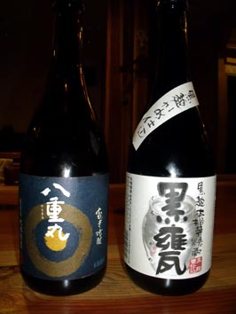 さてさて。新年早々、ワインなんて呑めるか。 なんていう根っから日本人なお客様。よろしければ是非焼酎をご注文下さいませ。 芋焼酎 「黒甕」 と、麦焼酎「八重丸」を御用意させていただきました。