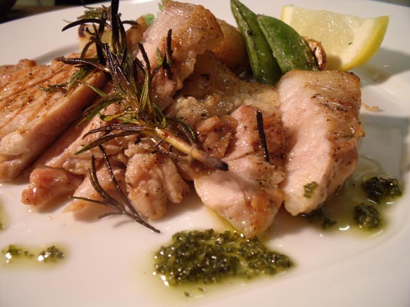 シェフ曰く「窯焼きの良さが1番わかる肉料理」です。ほんのりロゼがかかっているのはローストビーフと同じ原理。 もちろん生ではありません。)