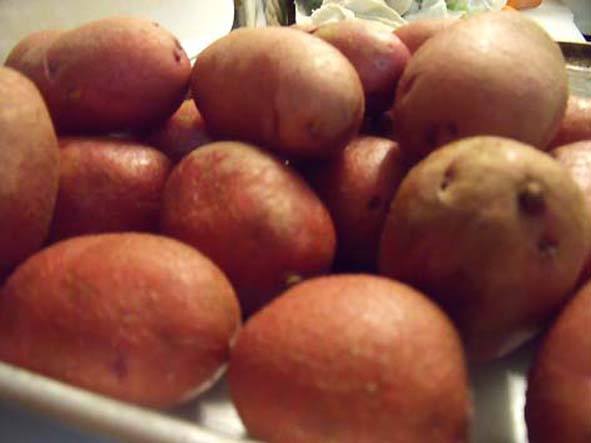 (レッドアンデスの石窯焼き¥600-北海道産の皮の赤いじゃがいも。サツマイモではありません。が、色が似ているせい?か、ほくほくして少し栗のような「甘さ」を持つ窯焼きにピッタリのおいもです。お塩でいただきます。)