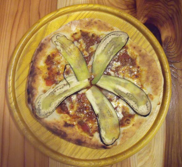 花のように美しいナスとひき肉のラグーのピッツァ¥1400-