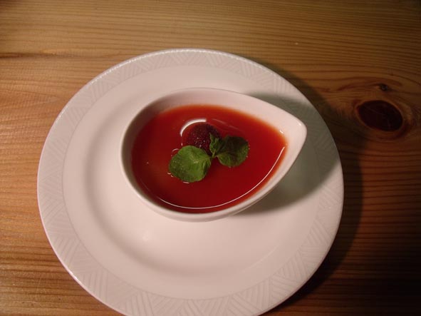 (オレンジと桃の入ったトマトのジュレ¥500- これをもう1度食べるために、来店した!という、リピーターのお客様がいらっしゃった(がーん。しかもなかったのよね。その時)くらいおいしいデザート。 トマトが嫌いなお子様にもいいかもしれませんね。 )