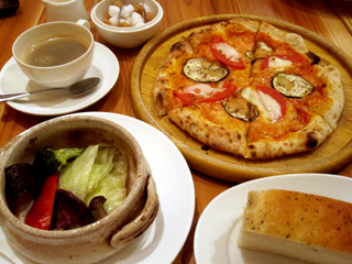 石窯蒸焼きのお野菜やキノコをからめていただく料理は 健康のために野菜を食べなくちゃ。