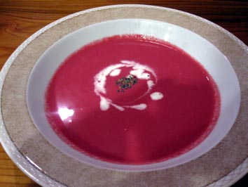 甘いものが苦手な方にも好まれる冷たさや食感。野菜のルバーブのソースも秋らしい渋さを添えています。