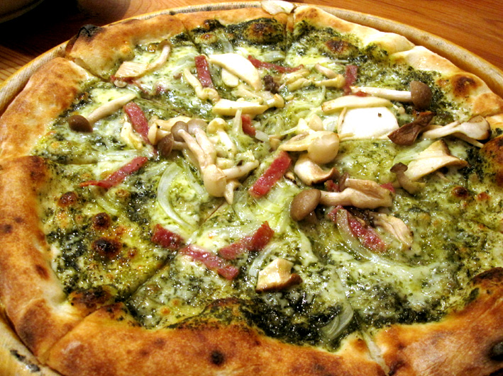 ジェノバ風のソースといえばバジルをたっぷり使った緑のソース。 さわやかなグリーンのせいか、トマトより食べやすい気もします。ま ゆーても葉っぱのソースですしね。 キノコがみずみずしくておいしい一品です。